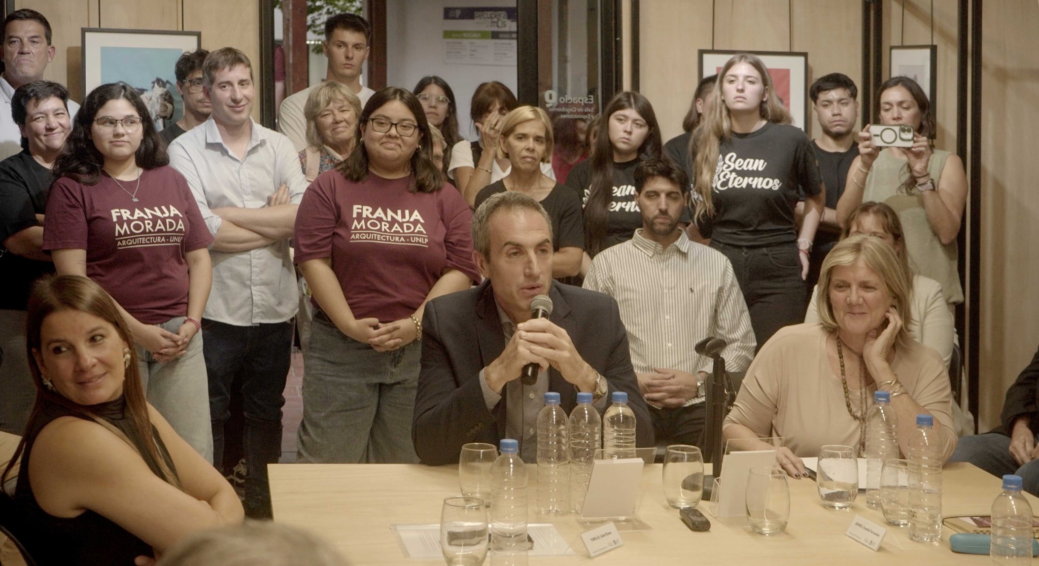 Durante la sesión estuvieron presentes docentes y los ex decanos Arq. Fernando Gandolfi, Arq. Gustavo Azpiazu, Arq. Néstor Bono, Arq. Alberto Sbarra y el vicedecano Arq. Javier García García.